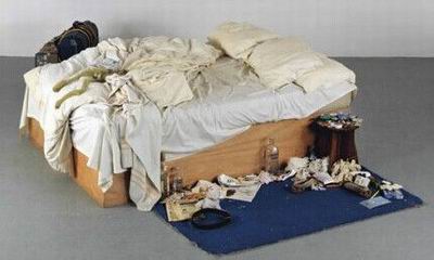 外国人真是太不靠谱了,这个“乱七八槽”的床,你确定这是艺术品?烟头、废纸、空酒瓶,乱糟糟的床……这就是英国艺术家特蕾西-埃明的作品《我的床》。