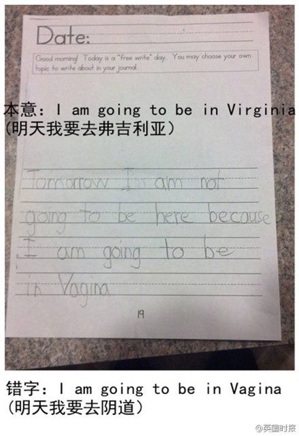发现国外的熊孩子写错字比汉字的错字要可怕许多啊。。