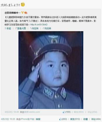这个时候,不能不提伟人“恩胖胖”。最近在朝鲜空军的音乐会上,此前从未被曝光过的金正恩童年萌照被投射到大屏幕上,台下立刻响起了雷鸣般的掌声。
