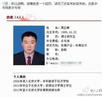 随便查了一下乒乓球课的老师,好敬业,好牛逼。(柴闫明)