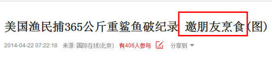 听到咱们网友说“鲨鱼肉不好吃,还是做鱼翅吧”,我突然感到美国渔民的吃货水平还真只是停留在“全家桶”的级别。