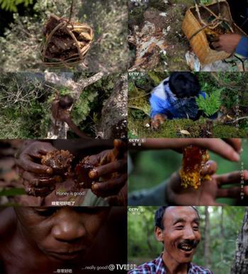 第一集《脚步》刚开始,讲述了藏族小伙白马占堆为弟弟采集野蜂蜜,要攀爬相当于10层楼高的大树,而这个镜头在BBC纪录片《人类星球》第4集中,就有非洲土族攀爬百米大树采蜜的场景。