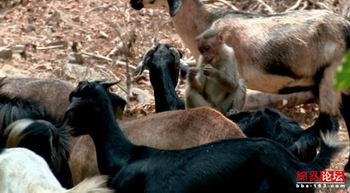 印度一农民牧羊时力不从心,于是便“邀请”猴子及其孩子们前来助阵牧羊。猴子们在山羊背上跳来跳去,以确保山羊们不迷失方向,安全到家。