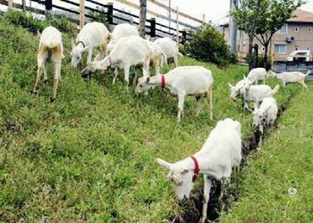 为清理一处广场上调节池周边的杂草,最近日本某市政府雇佣了一群山羊,让它们吃掉杂草。据了解,此举一年能节省200万日元。
