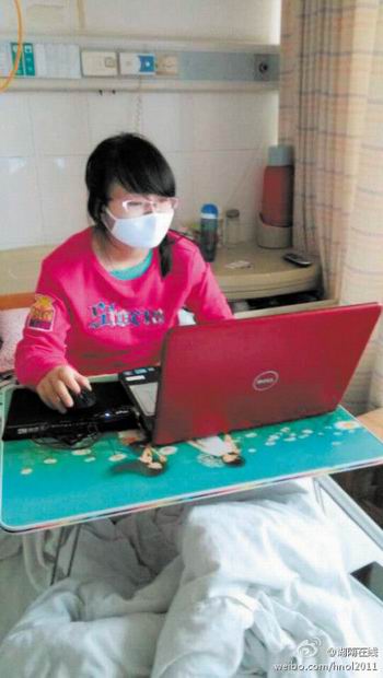 目前,在病床上的她每天用电子邮件给远在200多公里外的山里孩子们批改作业。