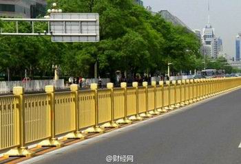 西长安街换上新护栏啦!闪闪发光的土豪金!被闪到了没?