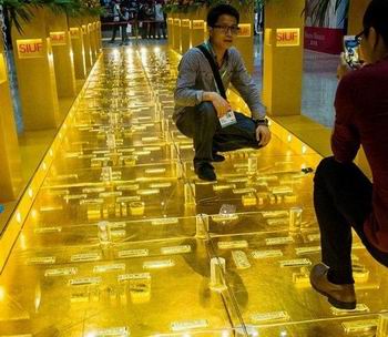 晃瞎眼没?没错,这是由400公斤黄金铺成的黄金大道!地点:深圳。