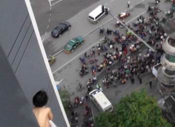 原来是看妹子……5月9日,广西柳州某酒店有一疑似吸毒赤裸女子欲跳楼轻生,引大批市民围观。