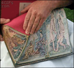 在欧洲的图书馆,能翻到一些非常老旧的书籍,它们的页面边沿隐藏一些图画(内容大多比较不堪入目),只有散开书页时才能看到,这种技术叫做fore-edge painting,最早出现于17世纪中叶。