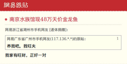 近日,南京一水族馆里的一条长60厘米、宽18厘米的金龙鱼,吸引了不少鱼类爱好者驻足观赏。而其高达48万元的标价,更是让观者啧啧称奇。据说,金龙鱼被视为神鱼,认为可以旺家镇宅避邪,被当作风水鱼来养。
