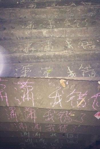 重庆万州一男子,说以前因工作忙忽略了女友,导致分手。现在他想挽回这段感情。于是,4日晚上,他从11点多一直写到次日凌晨三点,直到太白岩梯道上写满了“我错了”。
