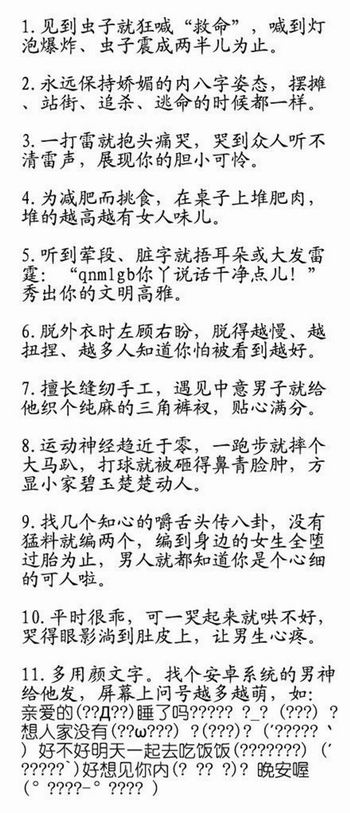 11个简单易学的小动作,让你迅速降低汉子气概,成为倾倒众生的女神。(小野妹子学吐槽)