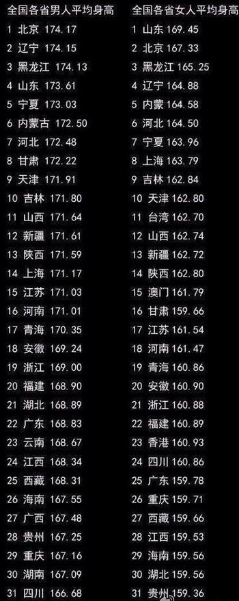 另附全国平均身高,都看看,你拖后退了没?
