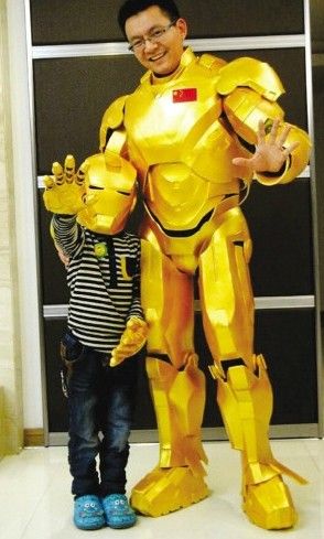 每个小男孩都有个超级英雄梦!为了给6岁的儿子圆梦,温州“80后”老爸黄楚花了1个多月亲手制作了一件带有中国元素的钢铁战衣,变身现实版“钢铁侠”!!