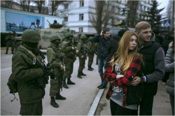 这张照片摄于动荡的乌克兰。近来发生的许多事告诉我们:1.自己国家出了事情,不要指望美国;2.更不能指望联合国;3.国家想要变强变好,只有靠自己;4.情侣们在任何情况下都不会忘记秀恩爱。
