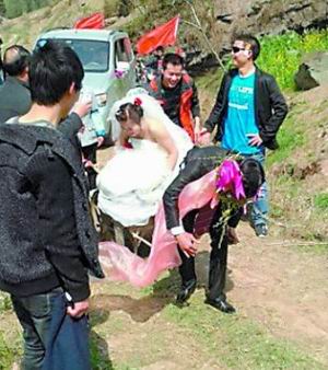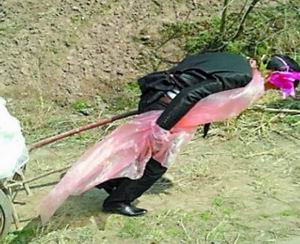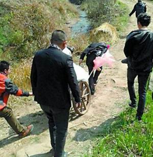3月16日重庆男子何先生去附近村子接新娘吴女士。在返回途中快到新郎家时,几名朋友突然拿出一个他们早就准备好的小推车,让新郎把新娘拉回家去。