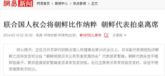 联合国人权理事会第25次会议上,朝鲜人权调查委员会主席迈克尔·科尔比17日演讲时一度“将朝鲜比作德国纳粹”,引发朝鲜强烈反击。