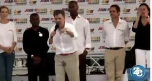 3月18日报道,哥伦比亚总统胡安??桑托斯日前在沿海城市巴兰基利亚的总统连任选举演讲中小便失禁,但处于演讲亢奋状态的总统本人却似乎毫无察觉。