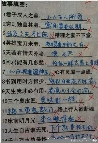 我转身要走的那一刻,他叫住了我:『同学,你叫什么名字?』我低头看了看胸前的红领巾,微微笑道:『我叫雷锋!』他愣了一下,说道:『雷你麻痹啊!你考卷姓名没写!』