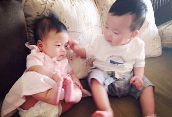 昨晚,姚晨在微博曝光儿子正面照,照片中,小土豆穿着短裤短袖,正在逗旁边的小妹妹玩耍,而小妹妹穿着粉色连衣裙,自顾自地玩着小脚丫。姚晨调侃小女孩称:“美眉,穿裙子是不可以跷脚的…”