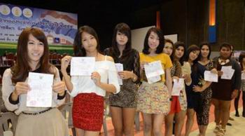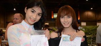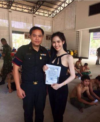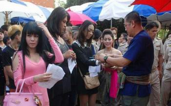 近日,泰国军方进行新兵征兵工作,许多到了兵役年龄的人妖也需要到征兵现场报到,但一般会以“身体不符合兵役规定”而获得免服兵役证书。每当漂亮人妖出现在征兵现场都会引来众人目光!