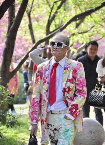 大爷,您是在和樱花比美吗?满目春光也比不上大爷的一套春装。