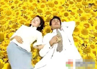 陈坤和董洁一起躺在向日葵花海的文艺范。
