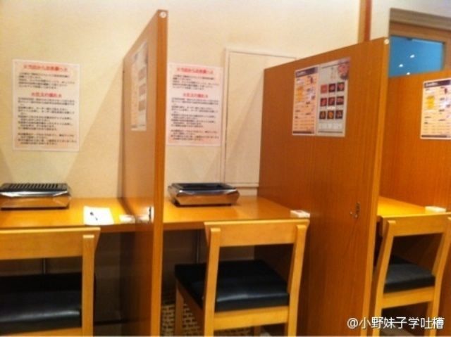 东京上野的人气烤肉店--“一人”。店如其名,没有长桌圆桌,而是隔成一个个小间,专供一个人没朋友、还特别想吃烤肉的客人使用。如果没冒烟飘香味的话,远远看去还以为是网吧……这是怎样一种孤独的境界
