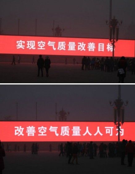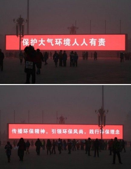 起来,被雾霾侵蚀的北京,起来,在污染中生存的人们!不要再在春节燃放烟花,不要再次被雾霾笼罩。不要说我们一无所有,我们是这个城市的主人!北京的人民团结起来起来!