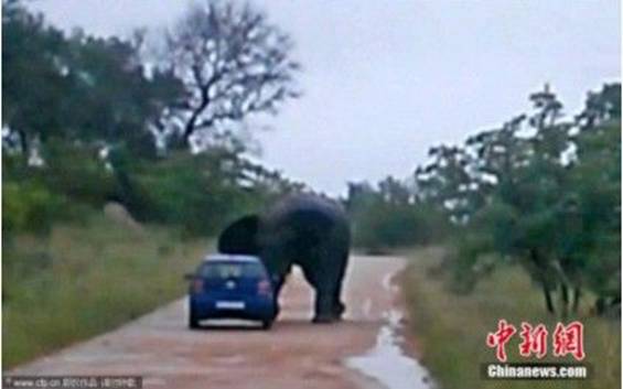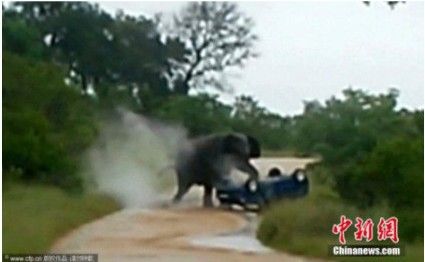 英国一对情侣最近驾车在公园内“偷拍”一头发情的大象,遭到大象突然袭击。狂躁的大象将汽车掀翻,导致一人受伤,所幸没有生命危险。