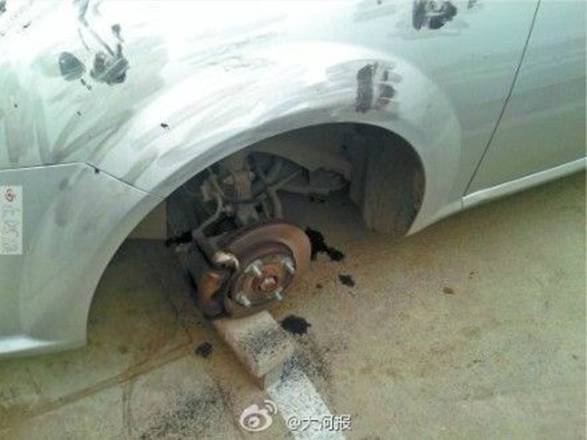 郑州一伙小偷或为值班年终奖,竟将一辆小轿车的4个轮子偷走了!