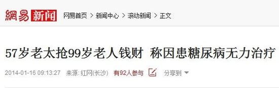 还是在湖南,一57岁的女子,抢了两名比她年龄更大的老人——分别为一名74岁和99岁的老人。