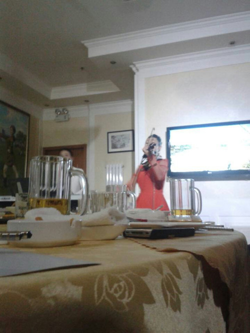 当有位客人希望她们演唱《金日成将军之歌》的时候,还是这位服务员,她正在演奏手风琴,再次告诉我们:“这里空气不好,不能演唱”。原来,演唱这首歌肯定是场合庄严肃穆,空气清新的地方。