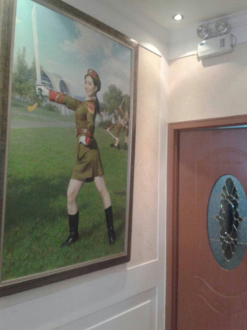 平壤大城山的朝鲜餐厅是人们窥视朝鲜的窗口,尽管从这个窗口传递的信息未必全然真实。在这家被称为京城“最美丽、最地道”的朝鲜餐厅里,展示最传统最正宗的社会主义。墙上油画类似中国文革前后的艳丽色彩风格,军人形象十分突出,甚至凸显女军人的飒爽英姿。