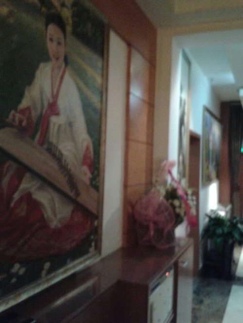 从外面上看,想象不到这是北京最有影响的朝鲜餐厅之一。位置普通,门脸普通,外面广告牌十分低调,字体很小,不是十分显眼,仅仅位于一座商业大厦的二楼,但是走上二楼就有别有洞天之感,里面清一色是朝鲜革命风格和朝鲜服务员。