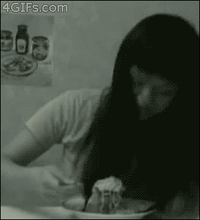 长发女生的正确吃面方法