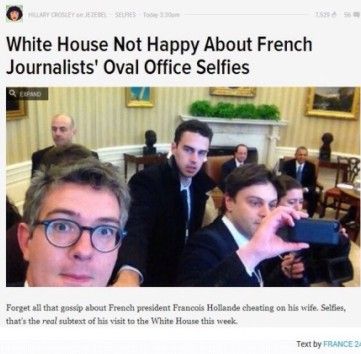 早前,法国总统奥朗德访美,在白宫与奥巴马进行会谈。结果进了椭圆形办公室之后,随行的法国记者们按捺不住激动的心情,纷纷掏出手机自拍,以证明到此一游。