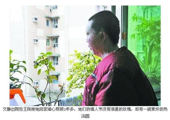 重庆女子文静数年前因意外烧伤毁容,生活难以自理。而在这时候,他的前男友王刚站出来了,答应她照顾她一辈子。“我想和她走完今生。”他说。