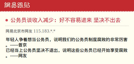 公务员是全国第一个这么大张旗鼓站出来喊工资低的职业,果然是牛逼职业啊。(网易网友)
