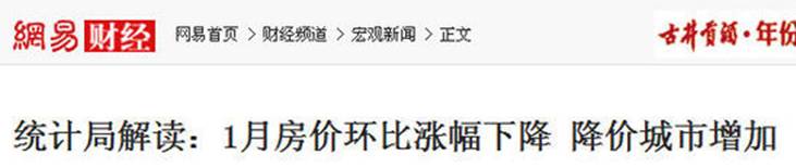 同是24日,统计局发布了1月份70个大中城市住宅销售价格统计数据。国家统计局城市司高级统计师刘建伟对数据进行了解读:70个大中城市房价环比涨幅总体平稳,同比涨幅有所回落 。