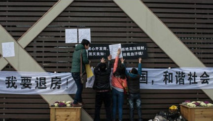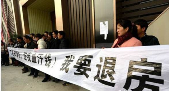 众多老业主打着“退房维权”的口号围堵、怒砸售楼处。
