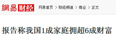 近日,西南财经大学中国家庭金融调查与研究中心在发布报告,报告指出:2013年资产前10%的中国家庭占有60.6%的资产。