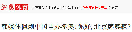 韩国媒体为给2018年平昌冬奥会造势,不惜对中国的北京和张家口进行深度讽刺,认为这两个城市的空气污染过于严重,从这个角度就应该提前被淘汰出申奥的阵营。