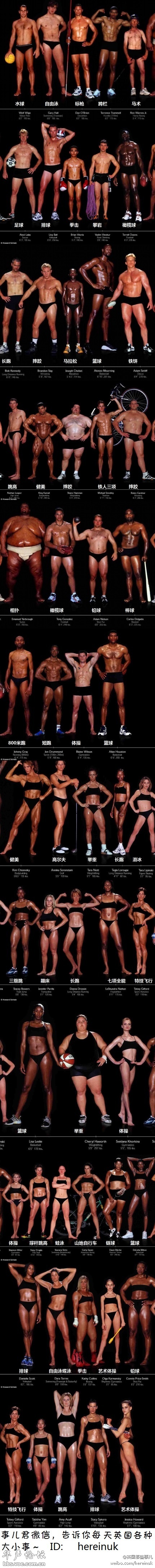 【肉图!运动员身材都神马样】 一个摄影师,专门找了一堆各种运动的专业运动员,拍了下面这组肌肉图,从他们肌肉线条中可以感受得到这项运动的特点么