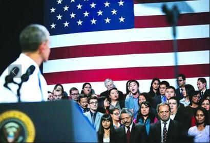 日前,奥巴马在一家华人康乐中心就移民政策改革发表演讲,在演讲中途,他被一名韩裔男士高声大喊打断:“我没办法见到家人,我需要你的帮助。总统先生,请你现在就使用行政命令,停止驱逐国内1150万名非法移民。”