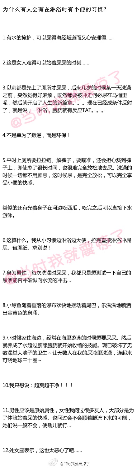 “为什么有人在淋浴时会有小便的习惯?”看看丧心病狂的回复