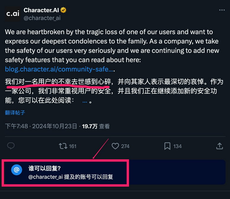 “我们对一名用户的不幸去世感到心碎,并向其家人表示最深切的哀悼。作为一家公司,我们非常重视用户的安全,并且我们正在继续添加新的安全功能…”