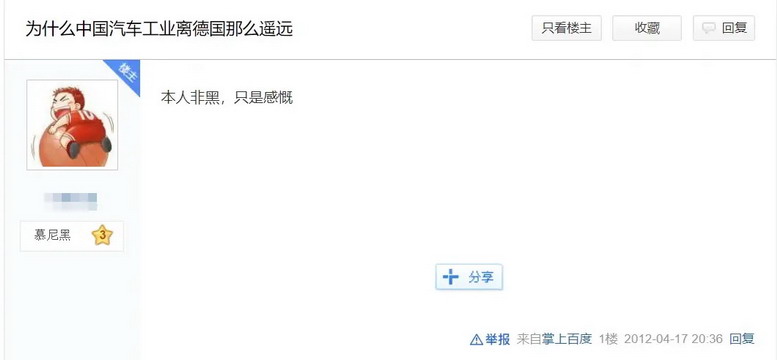直到 2012 年,仍有网友感慨,为何中国汽车工业离德国那么遥远。