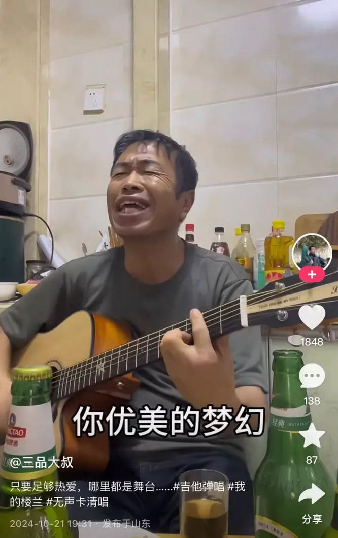都市打工人还在发帖询问问 “架子鼓入门设备得多少钱预算” 的同时,农村大姐已经在自家厨房给架子鼓取材,把能敲出响的厨具用胶带绑好,在自家小院里连敲带唱演了一段《冬天里的一把火》。