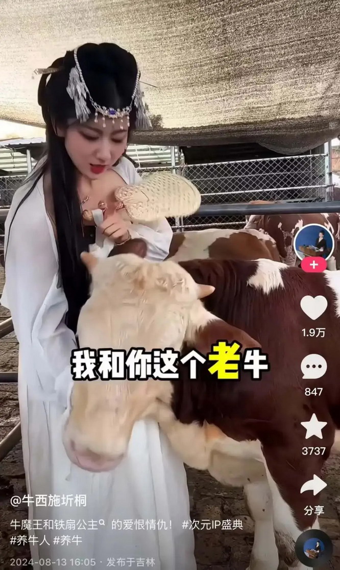 回村创业的年轻人,主业是养牛大户平时给农户付费捉牛,副业是喜欢 COS 铁扇公主,是时不时在牛棚里对牛弹电子琴。